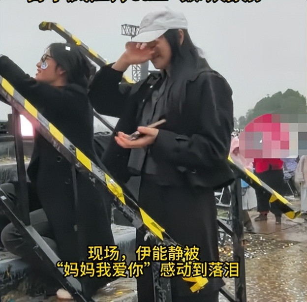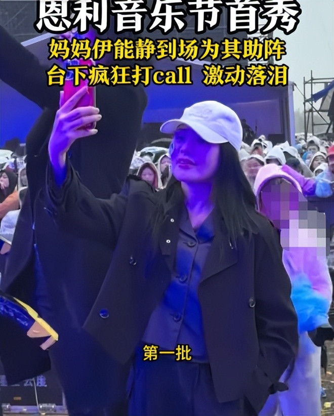 只见伊能静正在站在场下举起手机为恩利花式应援。